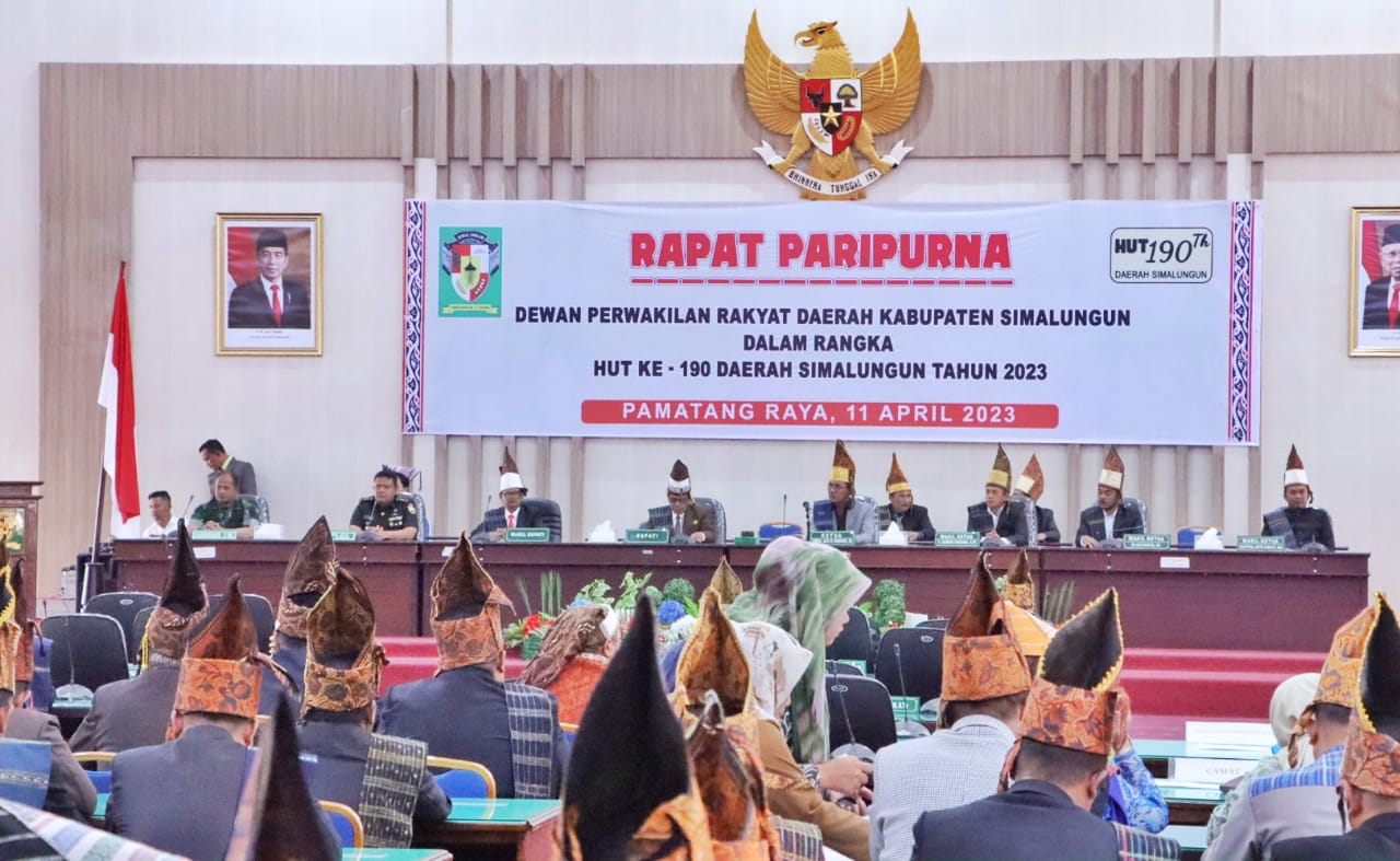 Kabupaten Simalungun-Sumut | Netthreeone – Dewan Perwakilan Rakyat Daerah (DPRD) Kabupaten Simalungun menggelar rapat paripurna dalam rangka Hari Ulang Tahun (HUT) ke 190 Daerah Simalungun Tahun 2023, di gedung DPRD, Kabupaten Simalungun, Sumut Selasa (11/4/23).