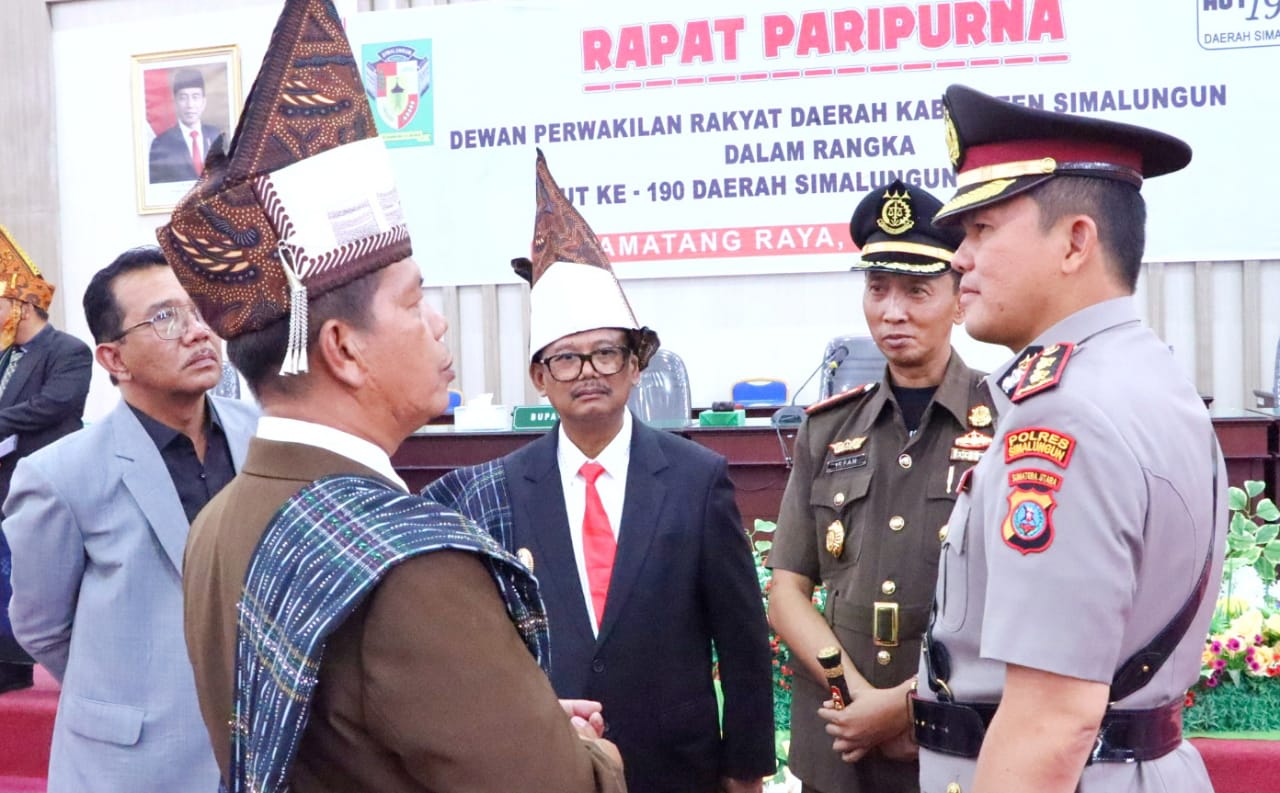Bupati Simalungun Radiapoh Hasiholan Sinaga, Wakil Bupati H Zonny Waldi, Danrindam I/BB diwakili Letkol Inf Agus Pudjo Priyo Semedi (Dan Dodiklatpur), Kasrem 022/PT Letkol Inf Yoppi Candra Atmaja Hutasoit, Wadan Denpom I/1 Mayor CPM A Sembiring, turut hadir dalam rapat paripurna tersebut.
