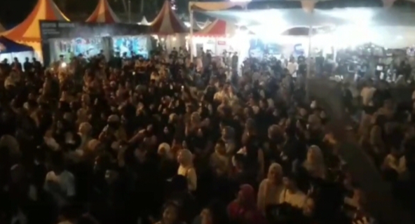 Selain menikmati sajian kuliner dan wahana hiburan, para pengunjung riang gembira berjoget dan berdendang bersama padati halaman depan panggung utama.