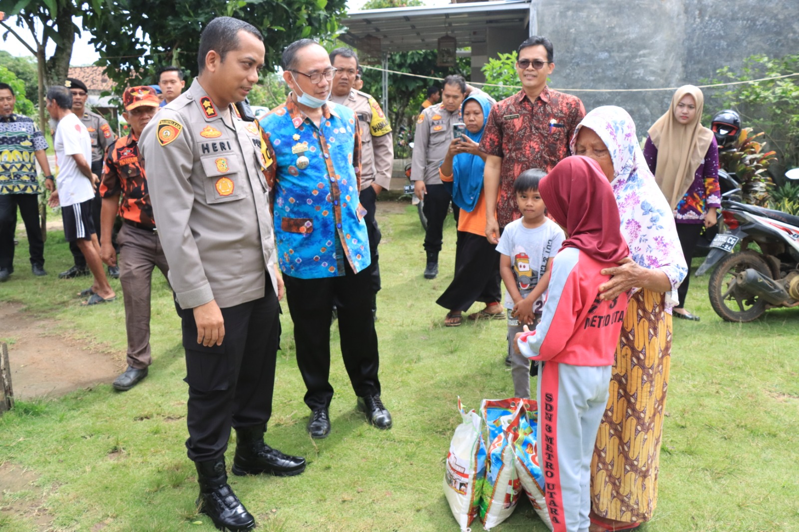 Kota Metro, Lampung | Netthreeone.com – Kapolres Metro Polda Lampung AKBP Heri Sulistyo Nugroho S.I.K, M.I.K.,melakukan kegiatan Bantuan Sosial ke masyarakat yang tertimpa musibah pohon tumbang dan warga yang membutuhkan di kel. Purwosari Kecamatan Metro Utara, Kota Metro pada Sabtu (01/04/2023) sekira pukul 09.00 WIB.