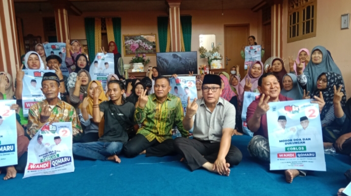 Metro,(Netthreeone.com)-Pasangan Calon Wali Kota dan Wakil Wali Kota Metro, Wahdi-Qomaru menyambangi kediaman warga di Jalan Jenderal Suprapto, Mulyojati, Metro Barat, Sabtu (5/10/2024).