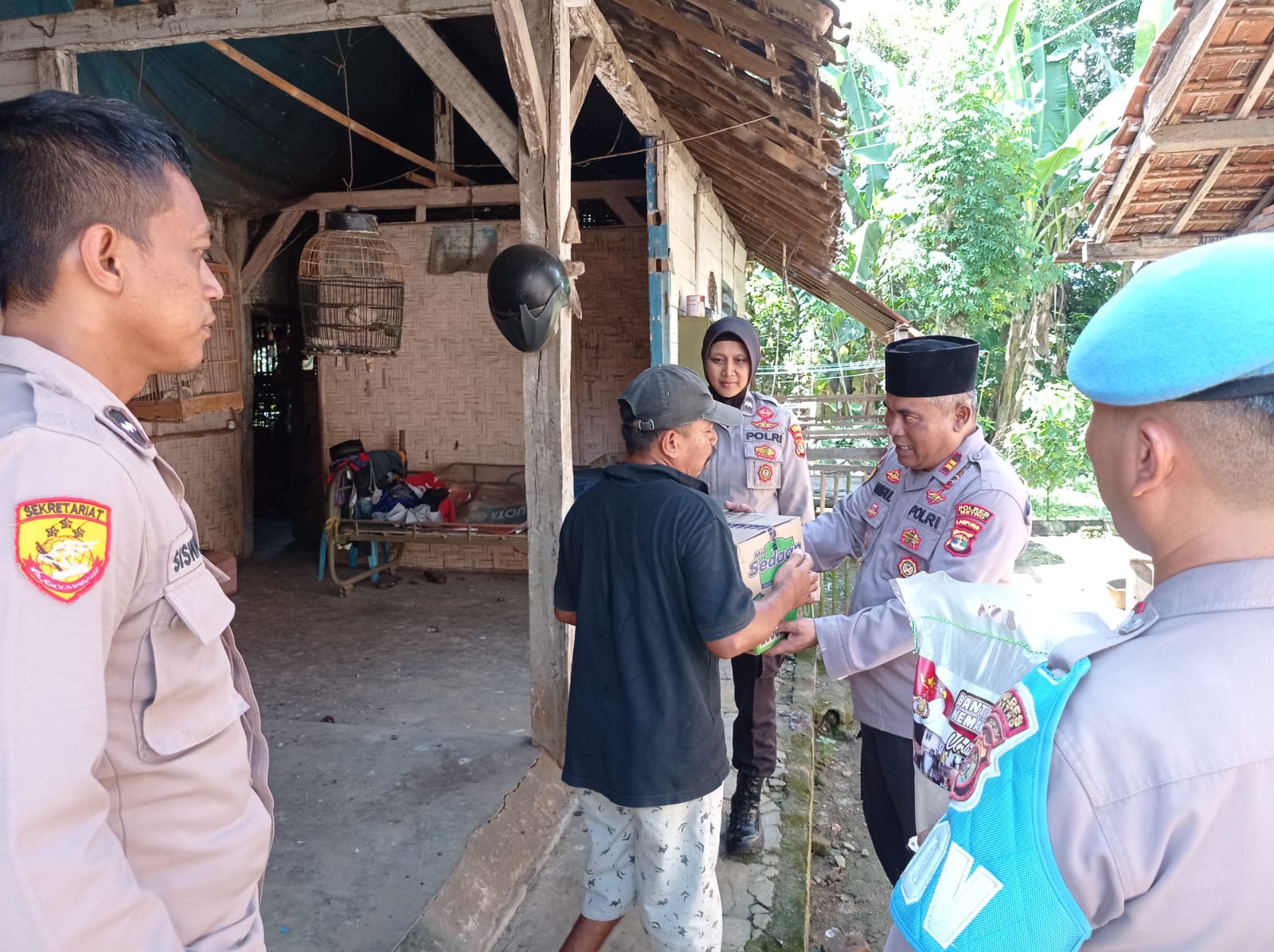 Kota Metro, Lampung | Netthreeone.com – Kapolres Metro Polda Lampung AKBP Heri Sulistyo Nugroho S.I.K, M.I.K. melalui Kapolsek Metro Barat IPTU Amirul Hasan melakukan kegiatan Bantuan Sosial kepada masyarakat yang membutuhkan di kel. Mulyojati dan Ganjar Asri Kecamatan Metro Barat Kota Metro, Senin (10/04/2023).
