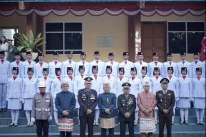 Pasukan Paskibra berhasil menurunkan bendera sang merah putih diiringi dengan lagu Kebangsaan Indonesia dan dilanjutkan dengan laporan dari Komandan Upacara kepada Inspektur Upacara, bahwa upacara penurunan bendera dalam rangka memperingati Hari Kemerdekaan Republik Indonesia ke-79 telah selesai. (Adv)